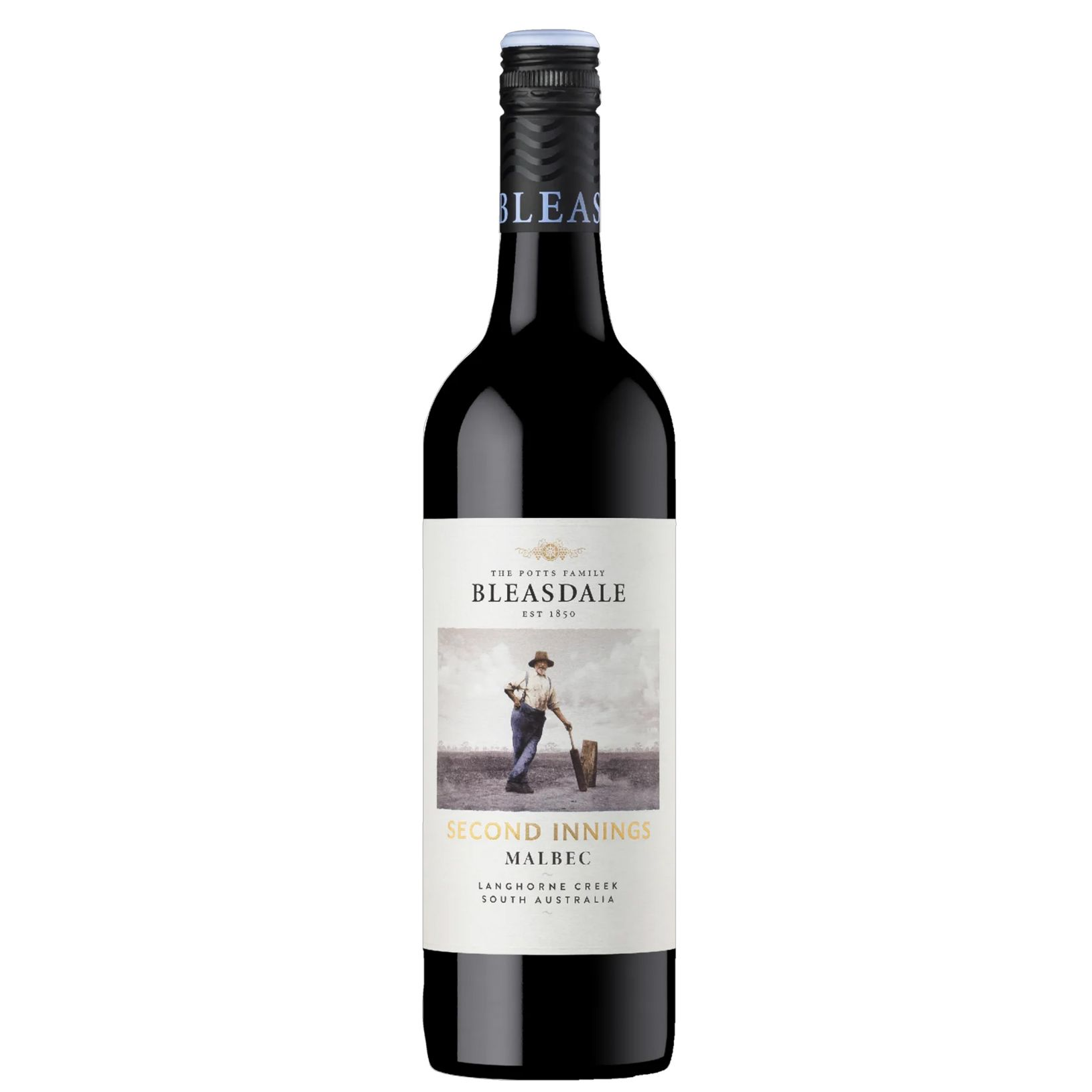 Malbec is rarely seen as a varietal wine in Australia but here at Bleasdale and in Langhorne Creek it stands on its own two feet and performs well enough to earn its stripes. Bleasdale’s founder Frank Potts, bequeathed the majority of his business to his sixth son, Frank Potts II. Frank Potts II played an important role in Bleasdale’s history, being responsible for building its famed red gum press. The Second Innings Malbec label depicts Frank Potts II taking part in a family game of cricket on the Bleasdale property.