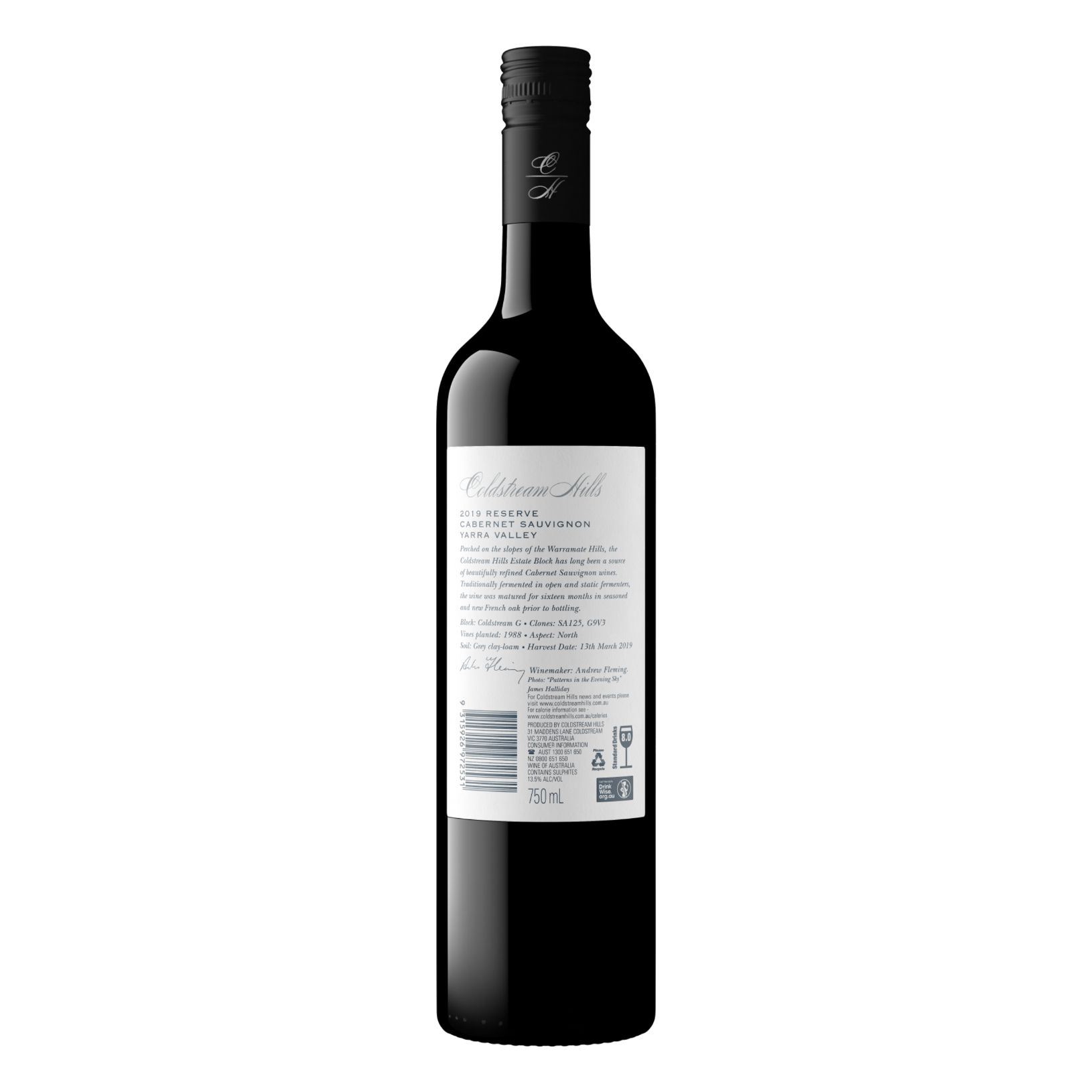 The Reserve Cabernet Sauvignon was first made in 1992 and in most years is sourced from Coldstream Hills G Block. A later maturing variety, Cabernet Sauvignon requires careful site selection with north facing hillside slopes being preferred. This wine is made using traditional techniques, with a portion staying on skins for extended maceration. Upon completion of fermentation, the wine is matured in new and used French oak barrels. Silky and concentrated, this wine displays the essence of cool climate Cabernet Sauvignon and will reward careful cellaring for at least fifteen years.