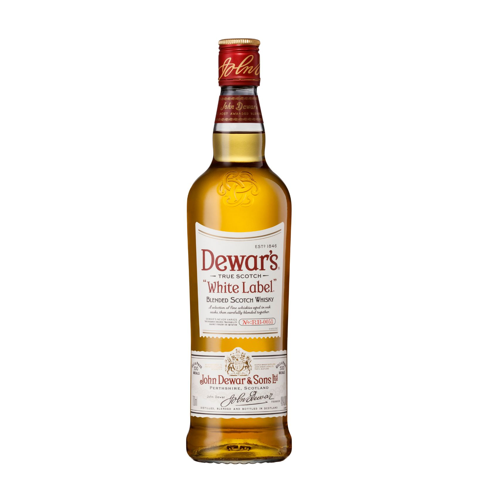 Dewar's® White Label Blended Scotch Whisky was created by the eponymous Dewar family. It is famous for its ‘double-aged’ blend, with six months of marrying in oak casks after initial maturation and blending. This Scotch whisky's unique taste and experience is one of the world’s most popular and awarded whiskies.