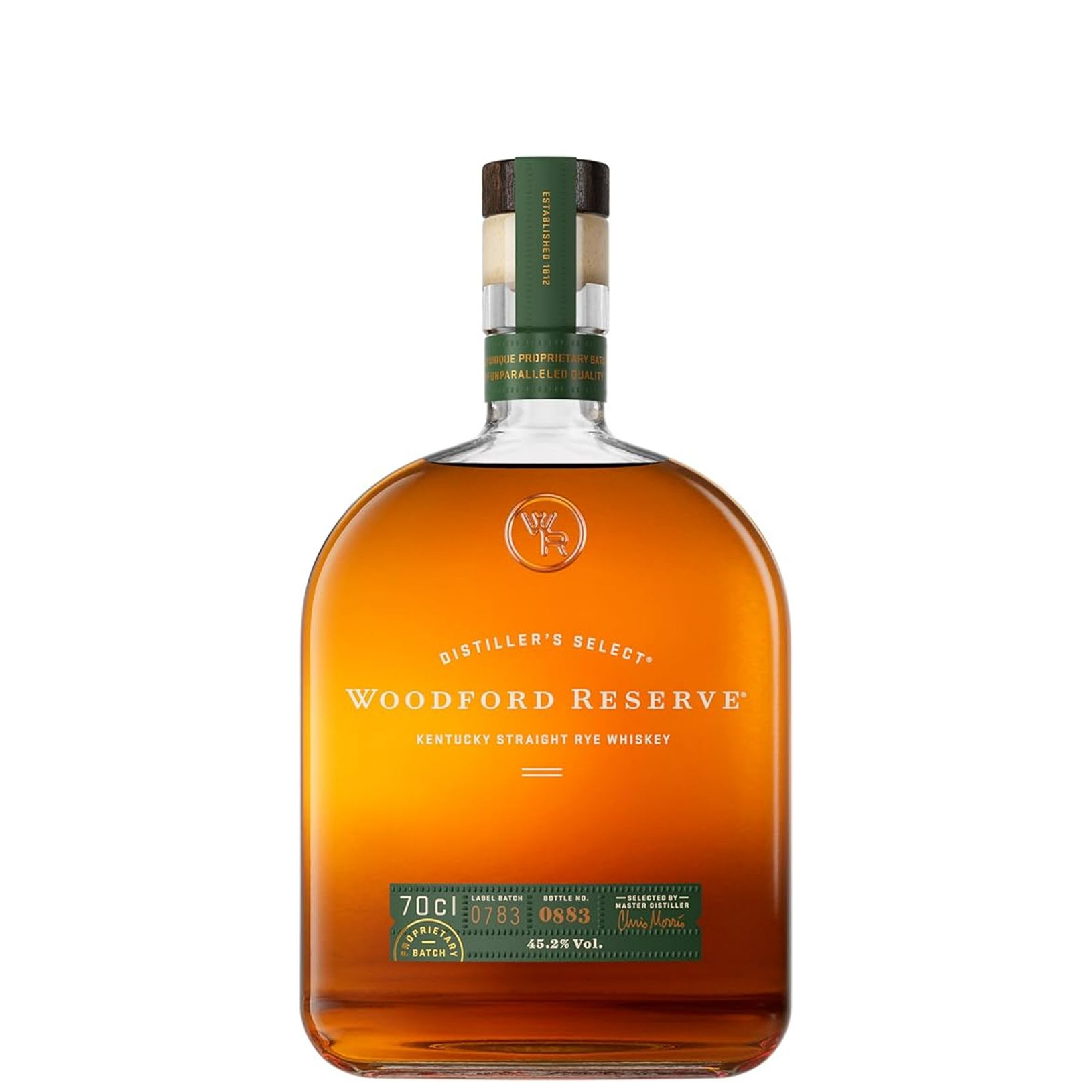 Woodford Reserve Kentucky Straight Rye Whiskey uses a pre-prohibition style ratio of 53% rye in its mash bill, delivering notes of tobacco and spice among a sea of fruit, floral, and sweet aromatics. Enjoy this rye whiskey neat, on ice or in mixed drinks like an Old Fashioned or a Rye Manhattan cocktail. Crafted Carefully. Drink Responsibly.